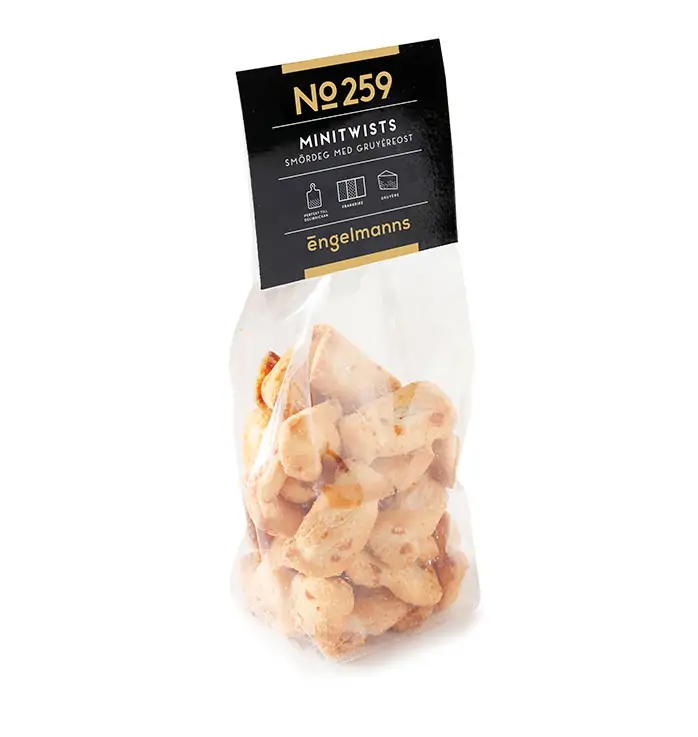 Delikatesstänger i miniformat. Krispig smördeg smaksatta med Gruyèreost. Passar perfekt till ostbrickan, men även försvinnande goda att äta precis som dem är.